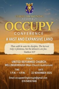 It is being organised by Tolu Oyewole, a brother from Nigeria who felt led to move to Wellingborough, and has a strong desire and prayer to see God’s Kingdom built here in our town. It is for that reason that he is organising this event to gather Christians together in worship, word and prayer. We commend it because we believe it will be significant in laying down a spiritual marker here in our town. It is an event which is not in isolation either locally or nationally.